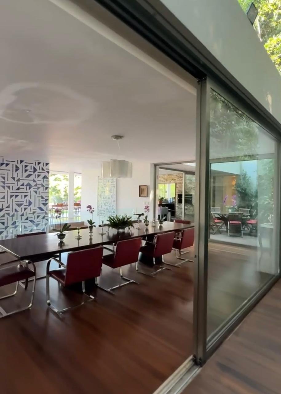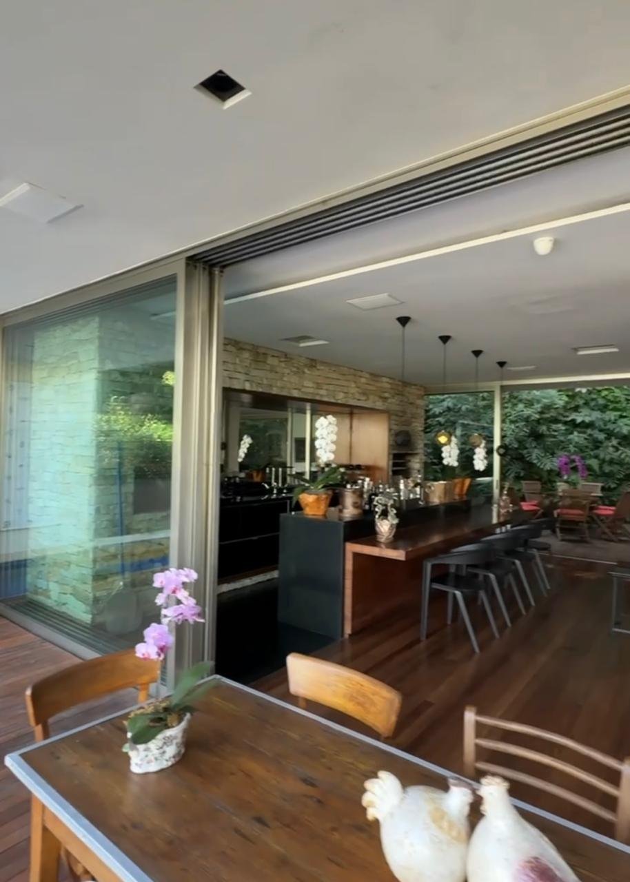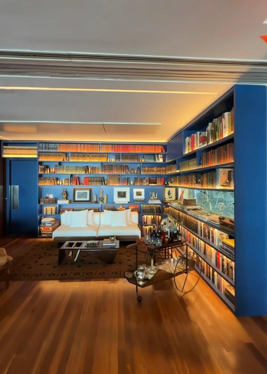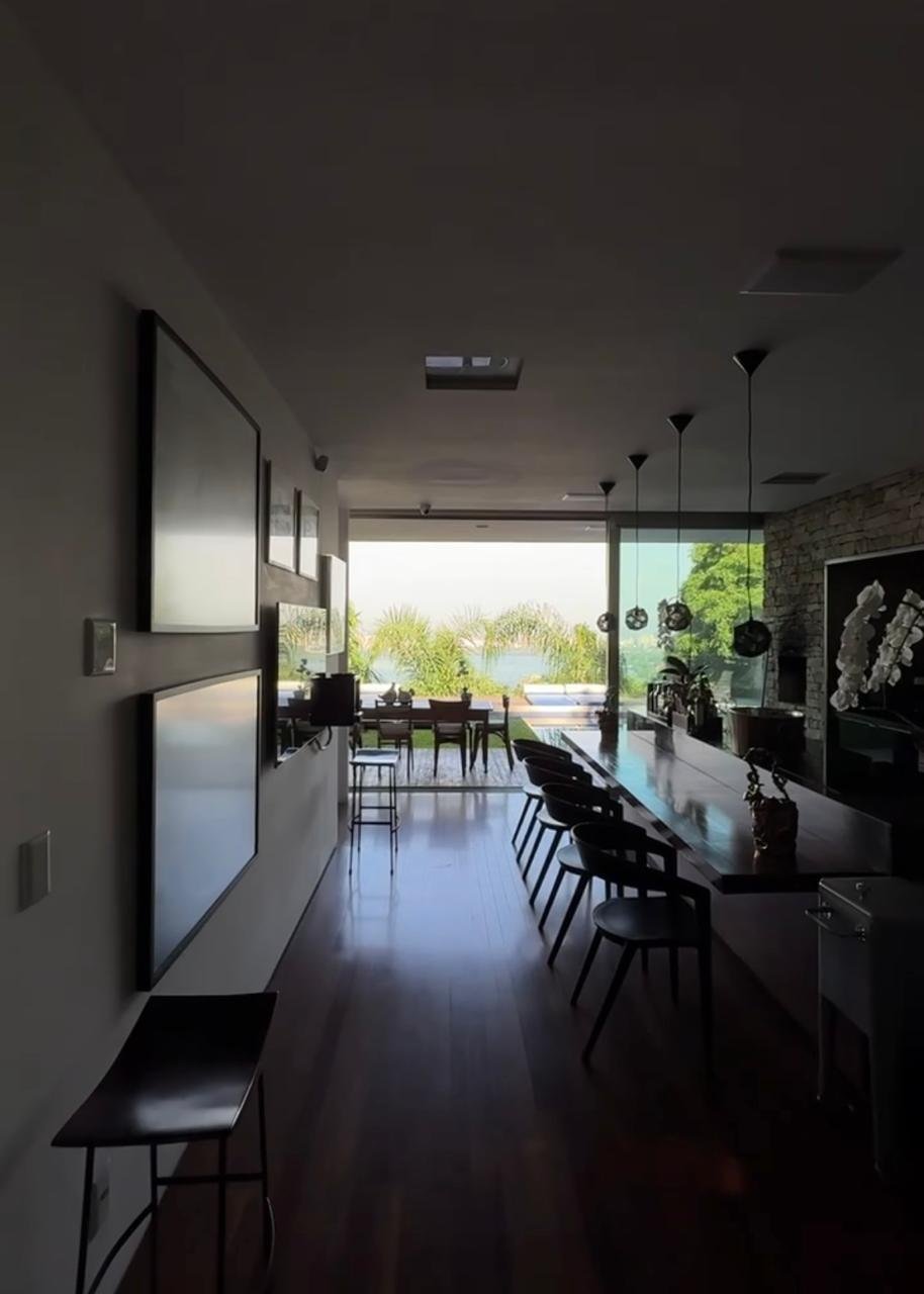 O último andar é um verdadeiro living panorâmico, com sala de jantar, biblioteca e duas cozinhas.