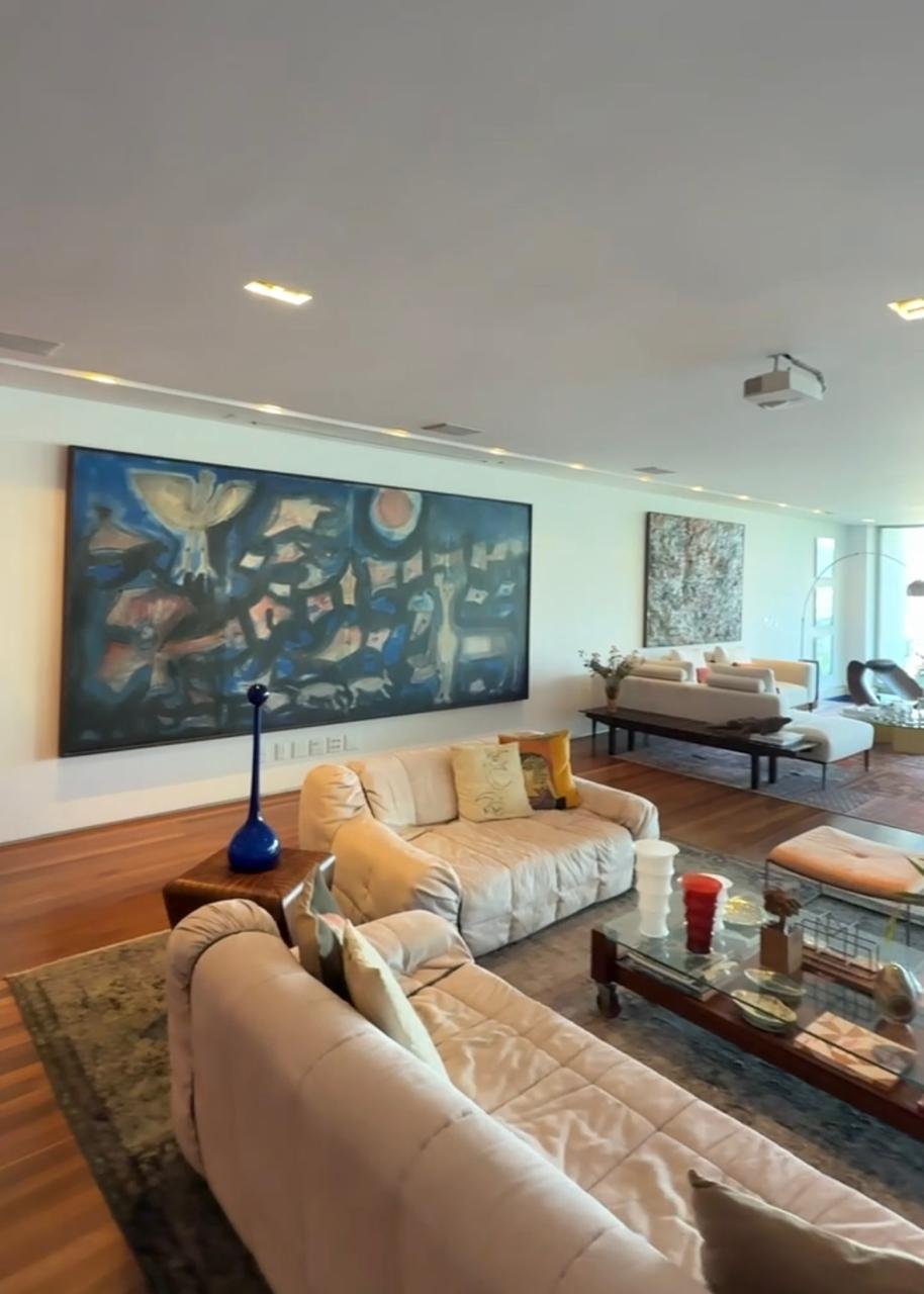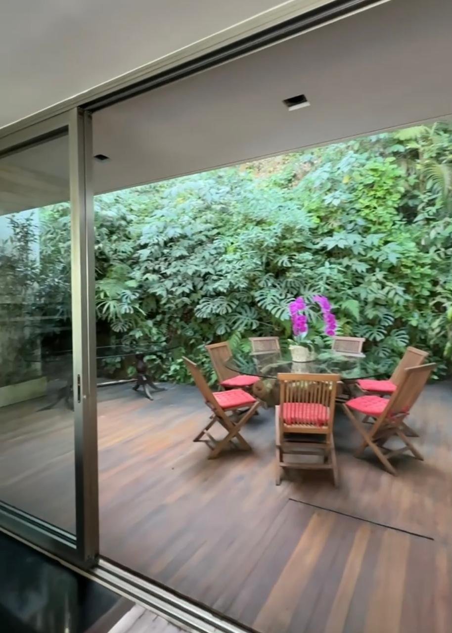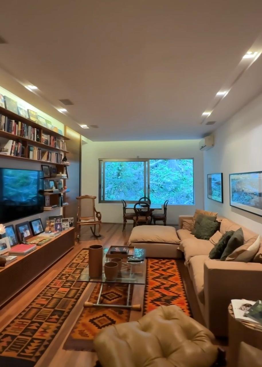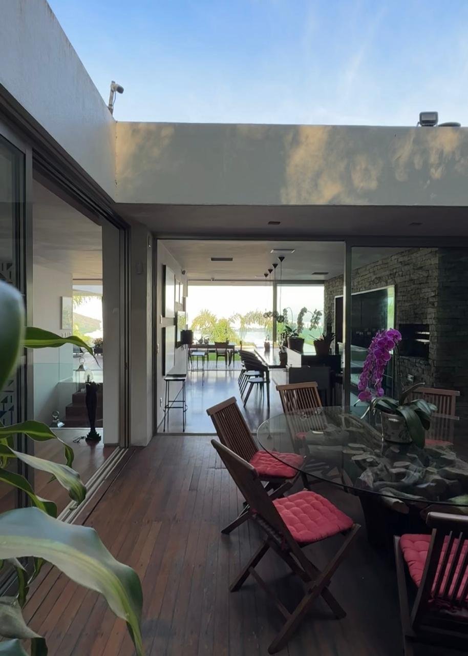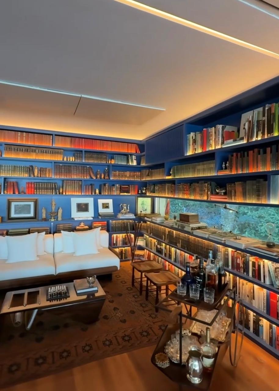 O último andar é um verdadeiro living panorâmico, com sala de jantar, biblioteca e duas cozinhas.