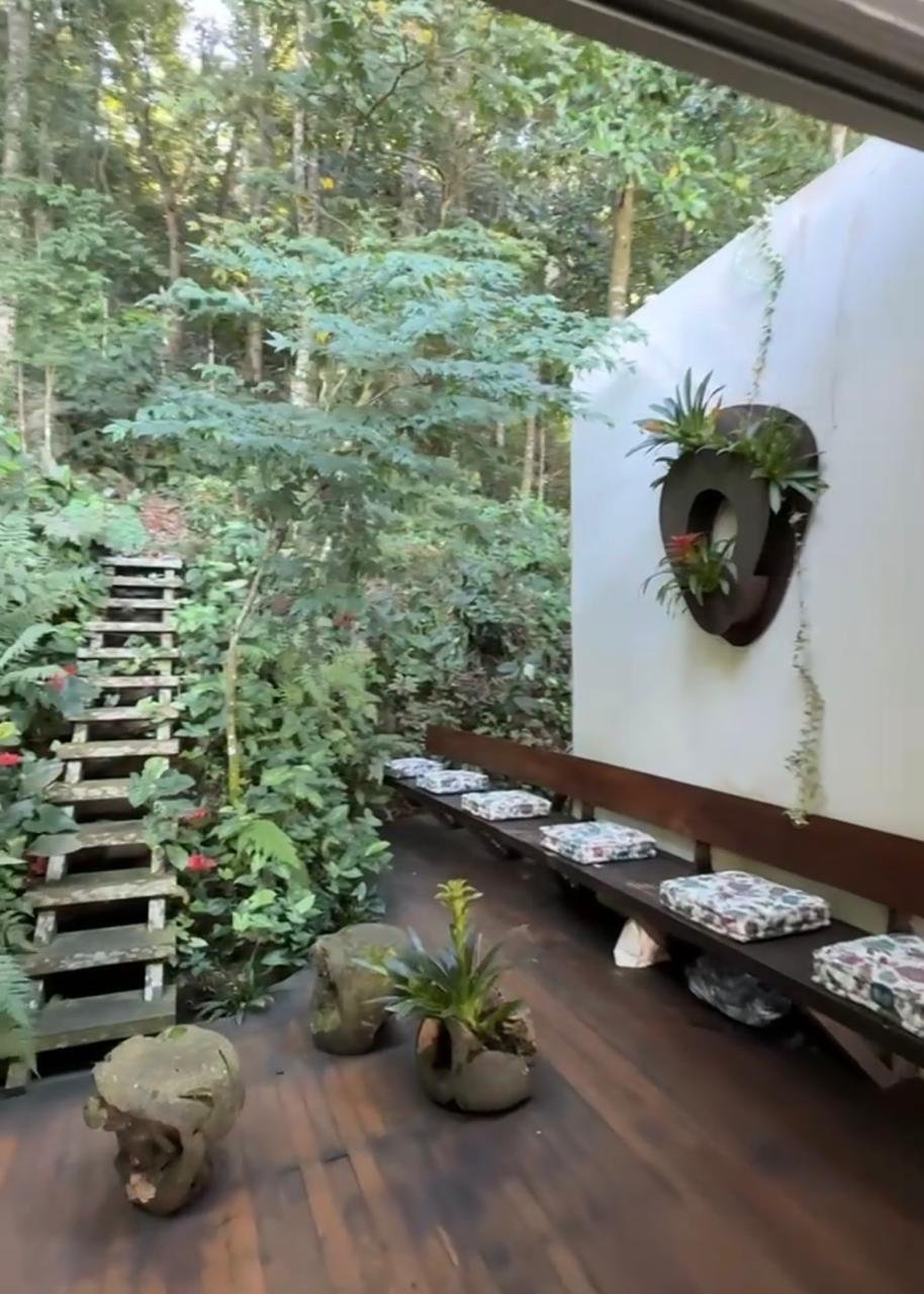 Aqui estão as três suítes, todas com closet, emolduradas por janelas que revelam a mata.