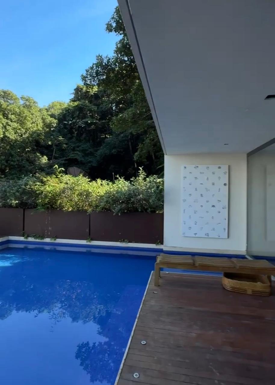 No mesmo andar, uma sala de TV com vista total para a natureza e sem nenhum impedimento visual se abre para uma atmosfera de serenidade, acompanhada de cozinha de apoio, banheiro e rouparia.