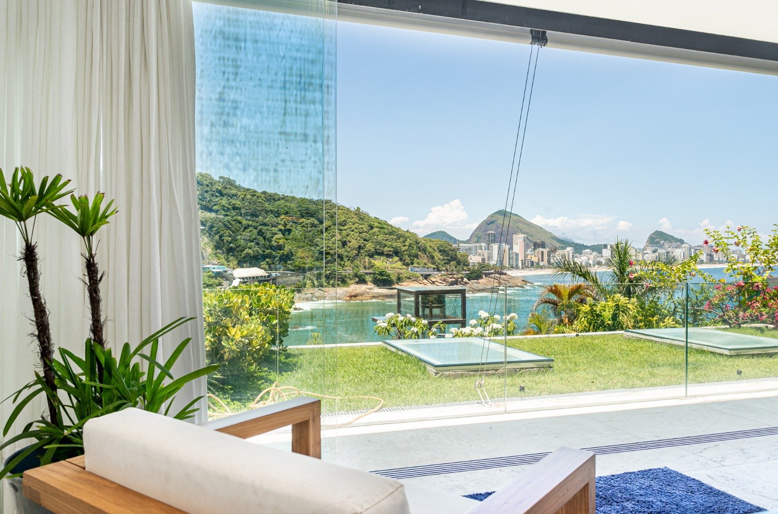 Esta residência de altíssimo padrão oferece vistas deslumbrantes para o mar, Cristo, Pão de Açucar, Morro Dois Irmãos, ambientes amplos, iluminação natural abundante e acabamentos exclusivos.